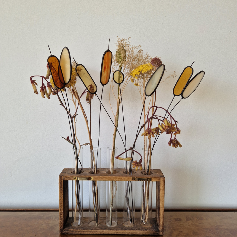 I’m Caz, a stained glass artist based in Sussex. I take inspiration from the South Downs countryside around me, and create nature inspired stained glass from the wild flowers, birds and leaves spotted on walks with my dogs. I love capturing those small moments in nature through glass, creating handmade pieces that bring a glimpse of the outdoors inside.